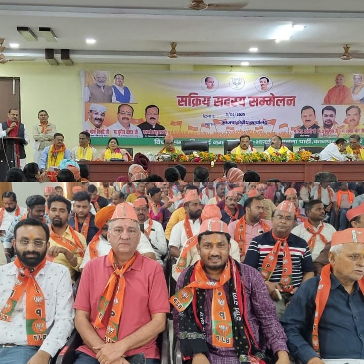 जगनायक प्रधान /पारदर्शी विकास न्यूज़ कानपुर। भाजपा क्षेत्रीय कार्यालय में मंगलवार को किदवई नगर विधानसभा एवं श्याम नगर के एक रिसॉर्ट में छावनी विधानसभा के सक्रिय सदस्यों का सम्मेलन का आयोजन किया गया।क्षेत्रीय कार्यालय में राष्ट्रगान के साथ कार्यक्रम का शुभारंभ हुआ। सम्मेलन में वक्ताओं ने भाजपा का चुनावी एवं संगठनात्मक विचार, भारतीय राजनीति में भाजपा द्वारा लाया गया परिवर्तन और प्रधानमंत्री के रुप में नरेंद्र मोदी के साथ 11 वर्षों में विकसित भारत की यात्रा के संबंध में विस्तार से बताया। कार्यक्रम में सक्रिय सदस्यों को पार्टी की पंच निष्ठाओं के बारे में बताया गया। पीएम नरेंद्र मोदी सरकार की 11 वर्षों की उपलब्धियोंके बारे में विस्तार से जानकारी दी गई।